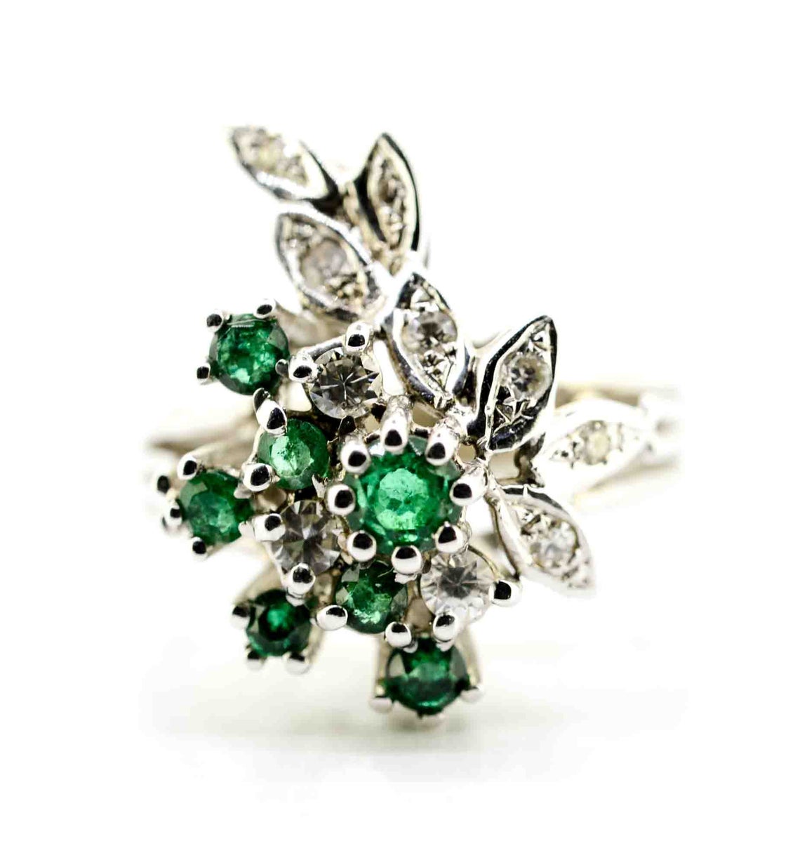 1970s 18ct White Gold Emerald & Diamond Cocktail Ring