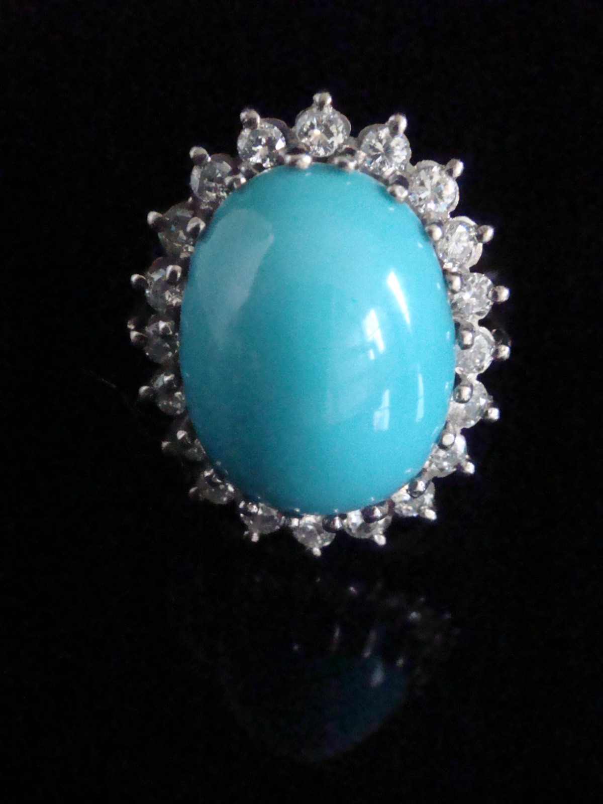 1970s 18ct White Gold Turquoise & Diamond Cluster Ring