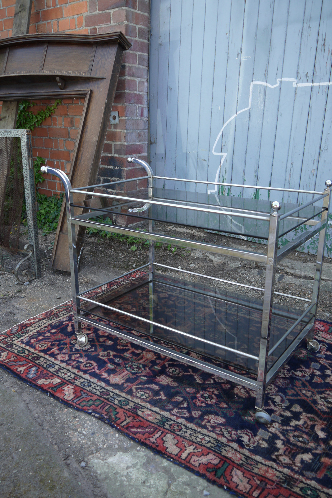 1970s Chrome & Smoked Glass Cocktail Trolley