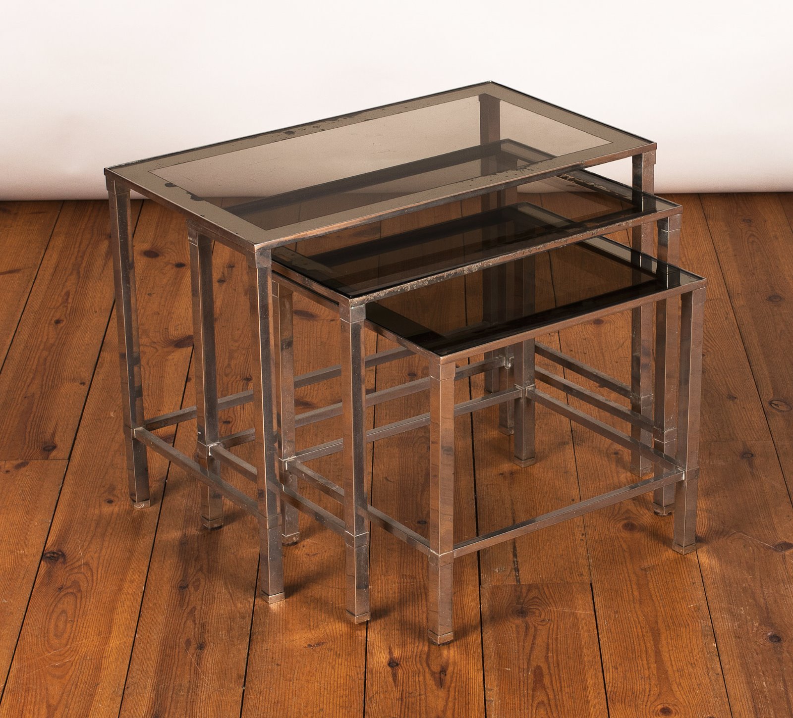 1970s Danish Nest of Three Chrome & Glass Tables (1 of 6)