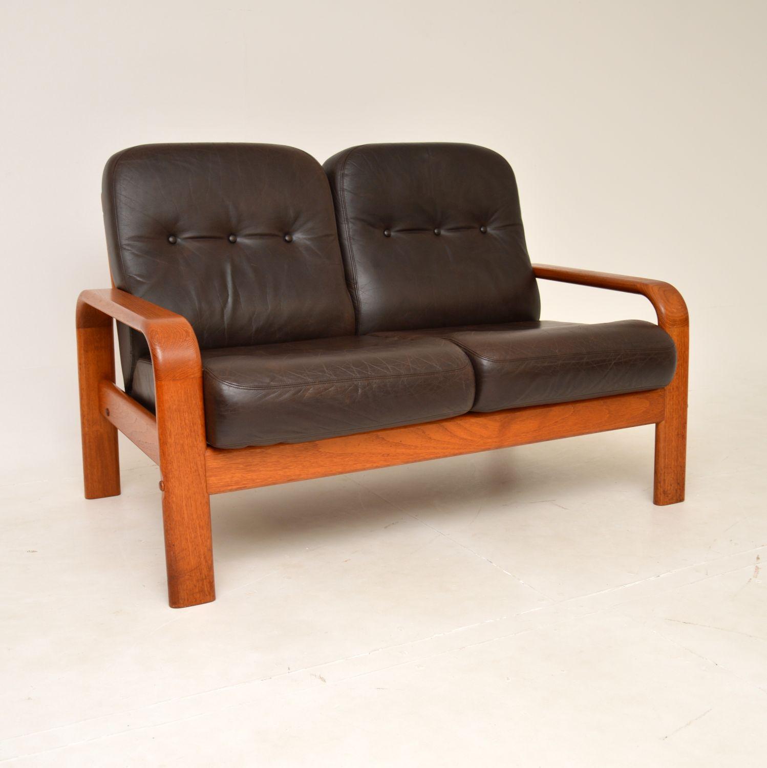 1970's Danish Teak & Leather Two Seat Sofa (1 of 10)