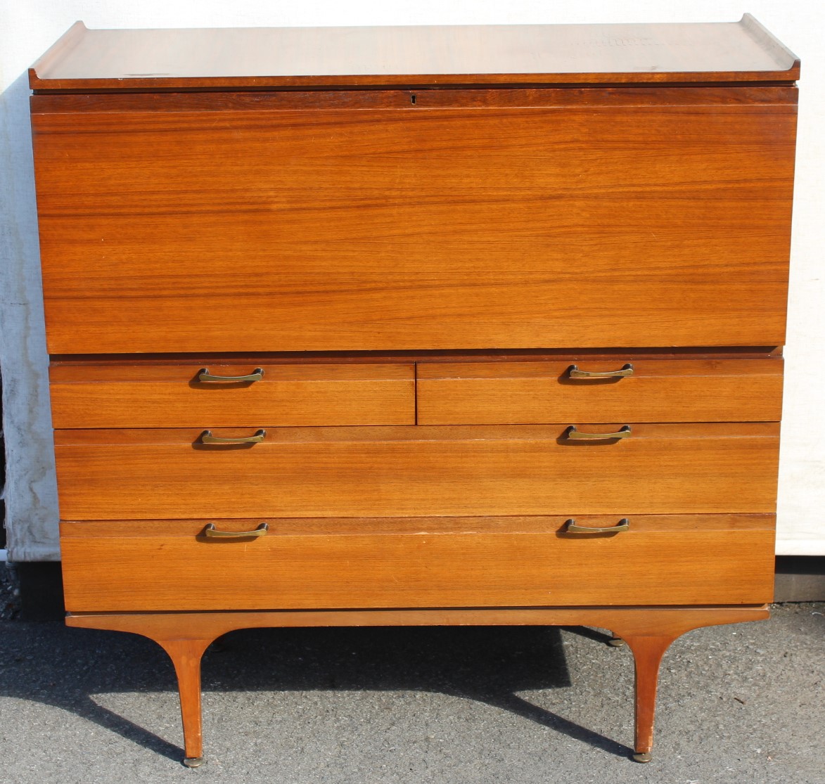 1970s Mahogany Retro Desk with Drawers & Fall Front