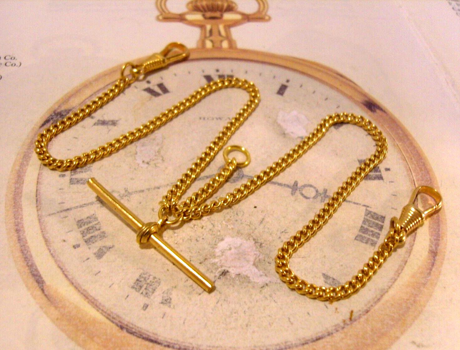 1970s Nos Vintage Pocket Watch Chain 12ct Gold Plated Curb Link Double Albert