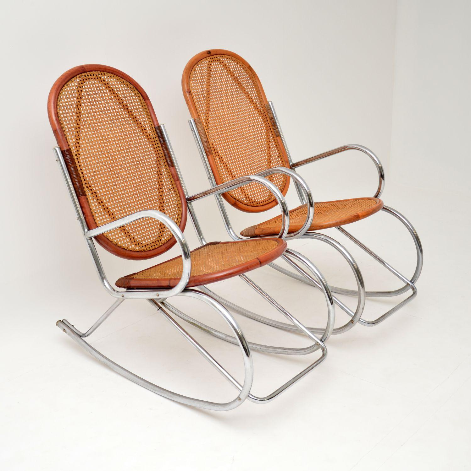 1970’s Pair of Retro Chrome & Bamboo Rocking Chairs
