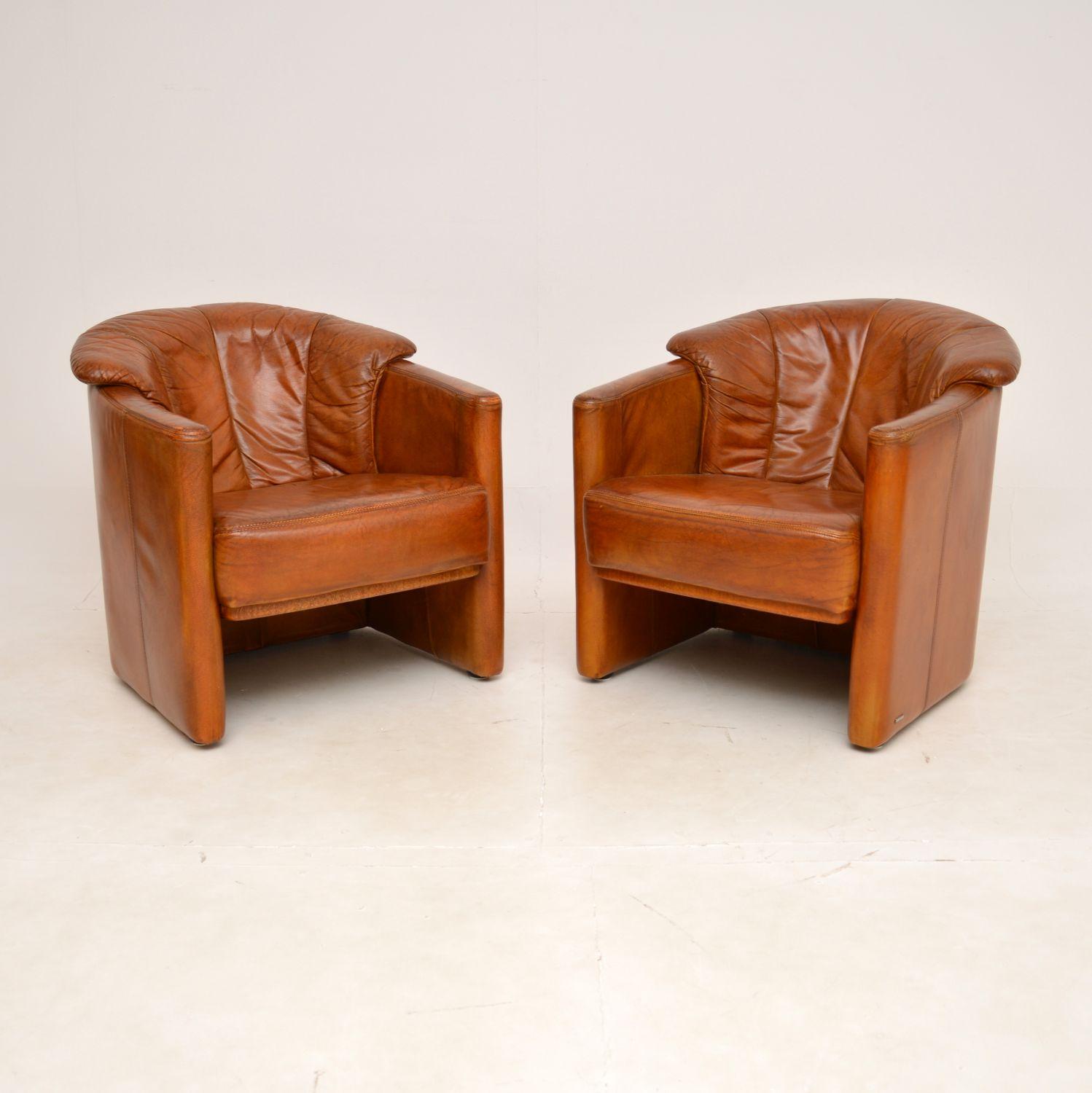 1970's Pair of Vintage Leather Armchairs by Koinor
