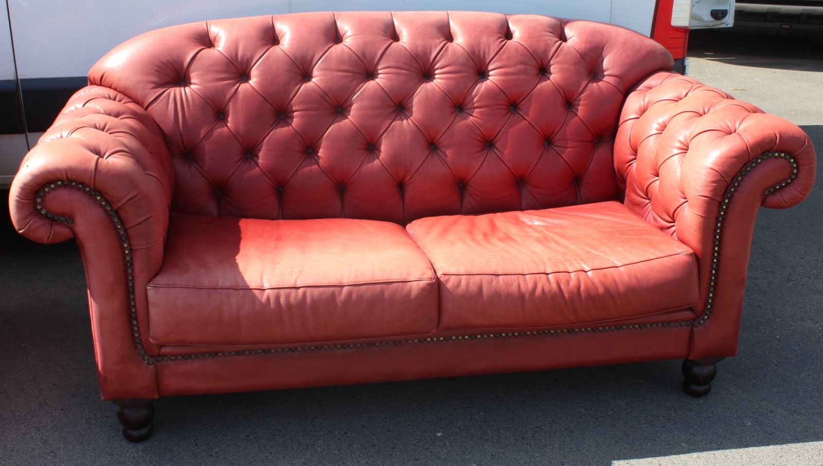1970s Pinky / Red Leather 2 Seater Chesterfield Sofa