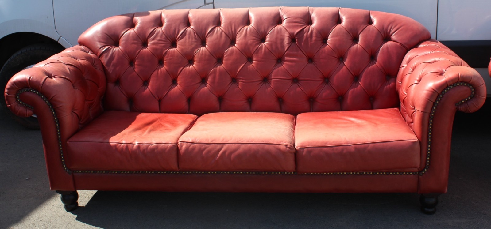1970s Pinky / Red Leather 3 Seater Chesterfield Sofa