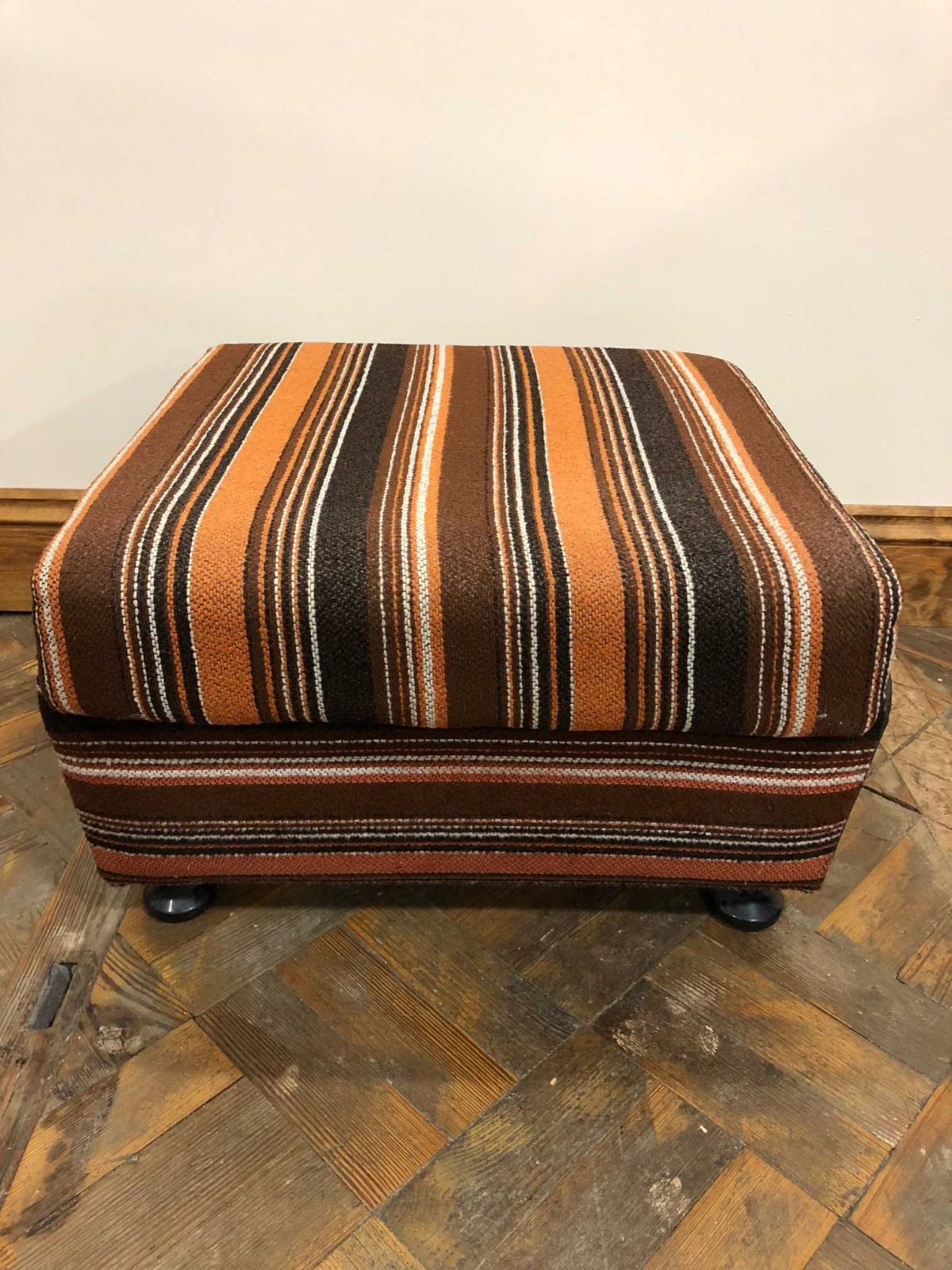 1970s Retro Pouffe or Foot Stool in Orange Striped Fabric with Floral Internal Fabric (1 of 1)