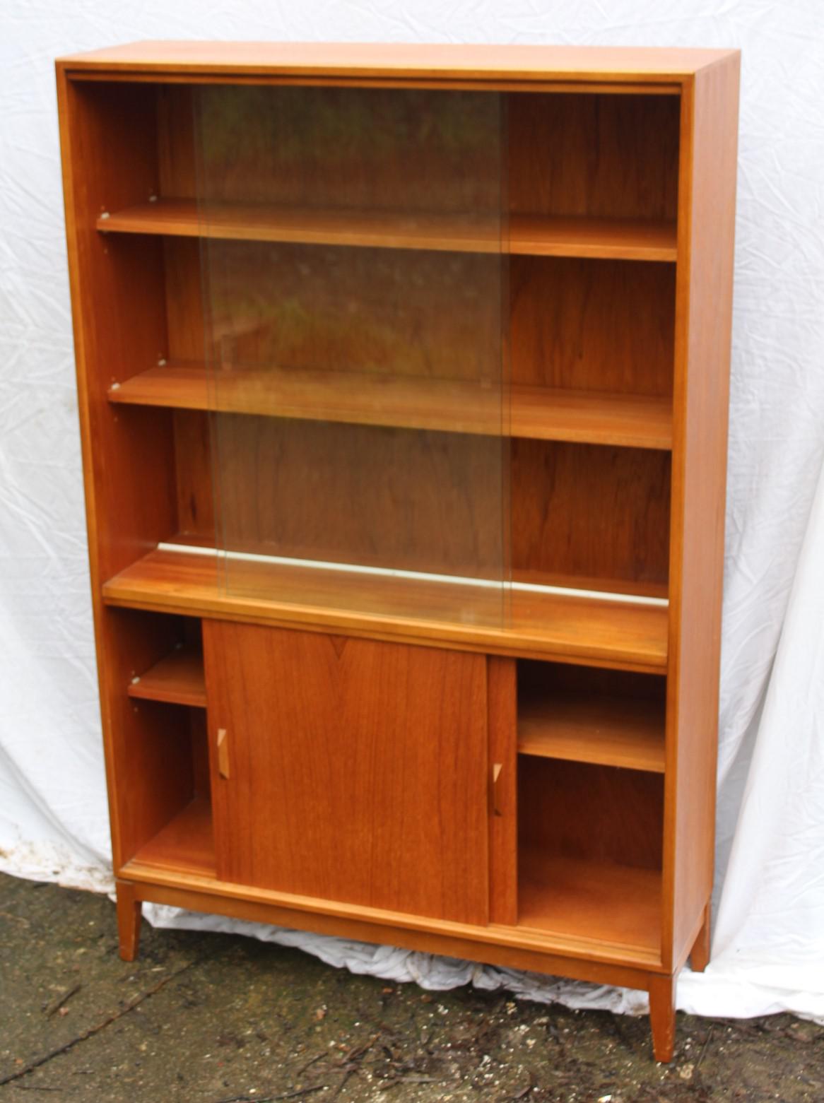 1970s Tall Teak Cabinet with Shelves and Sliding Doors. Gibbs Furniture