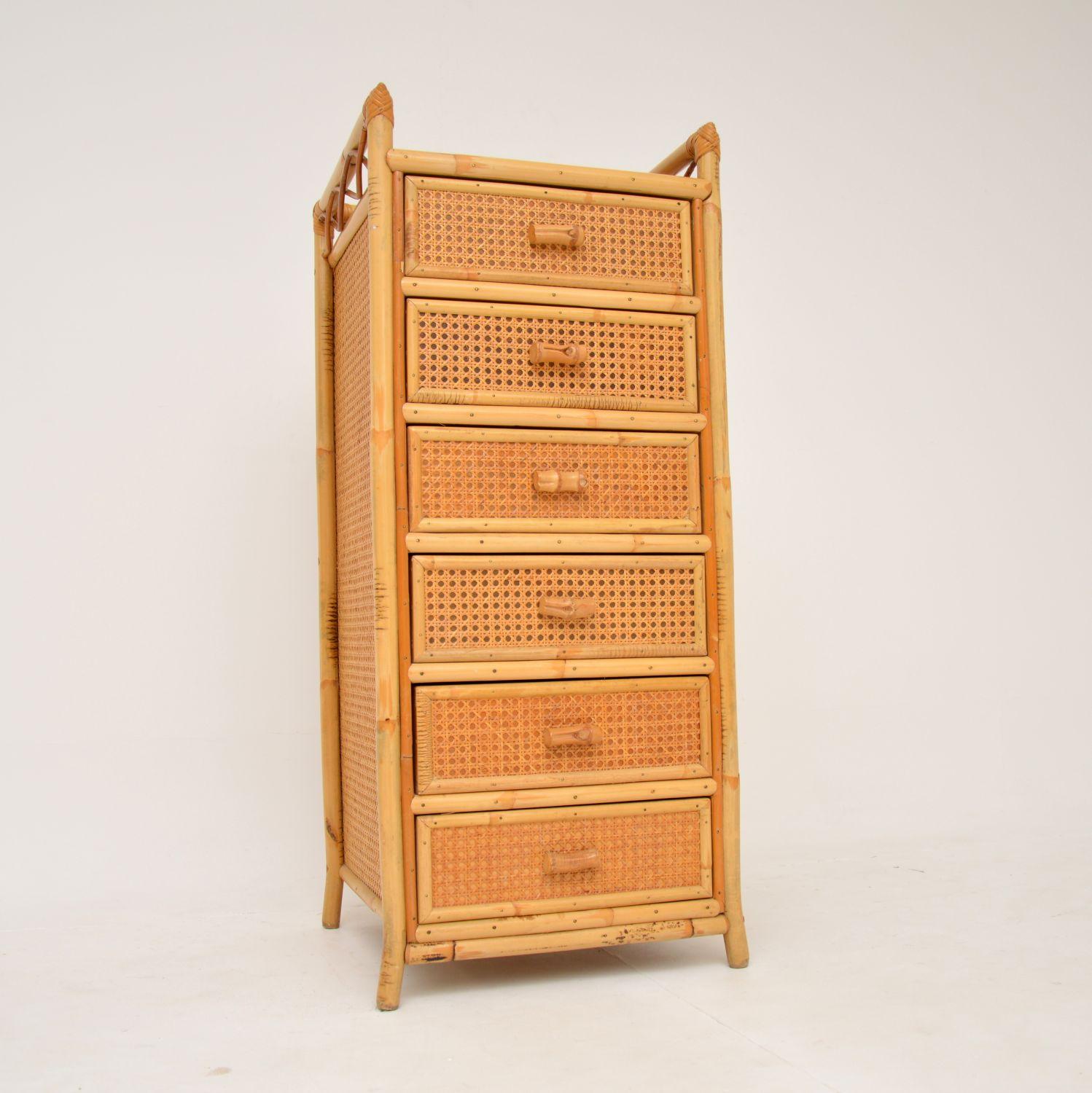 1970s Vintage Bamboo & Rattan Tallboy Chest of Drawers by Angraves (1 of 10)
