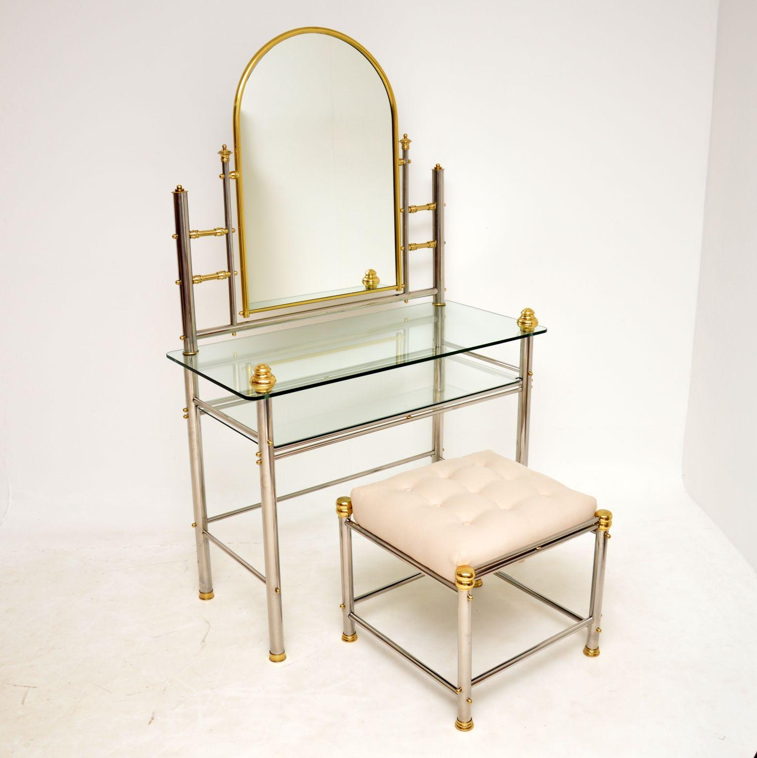 1970s Vintage Chrome & Brass Dressing Table with Stool