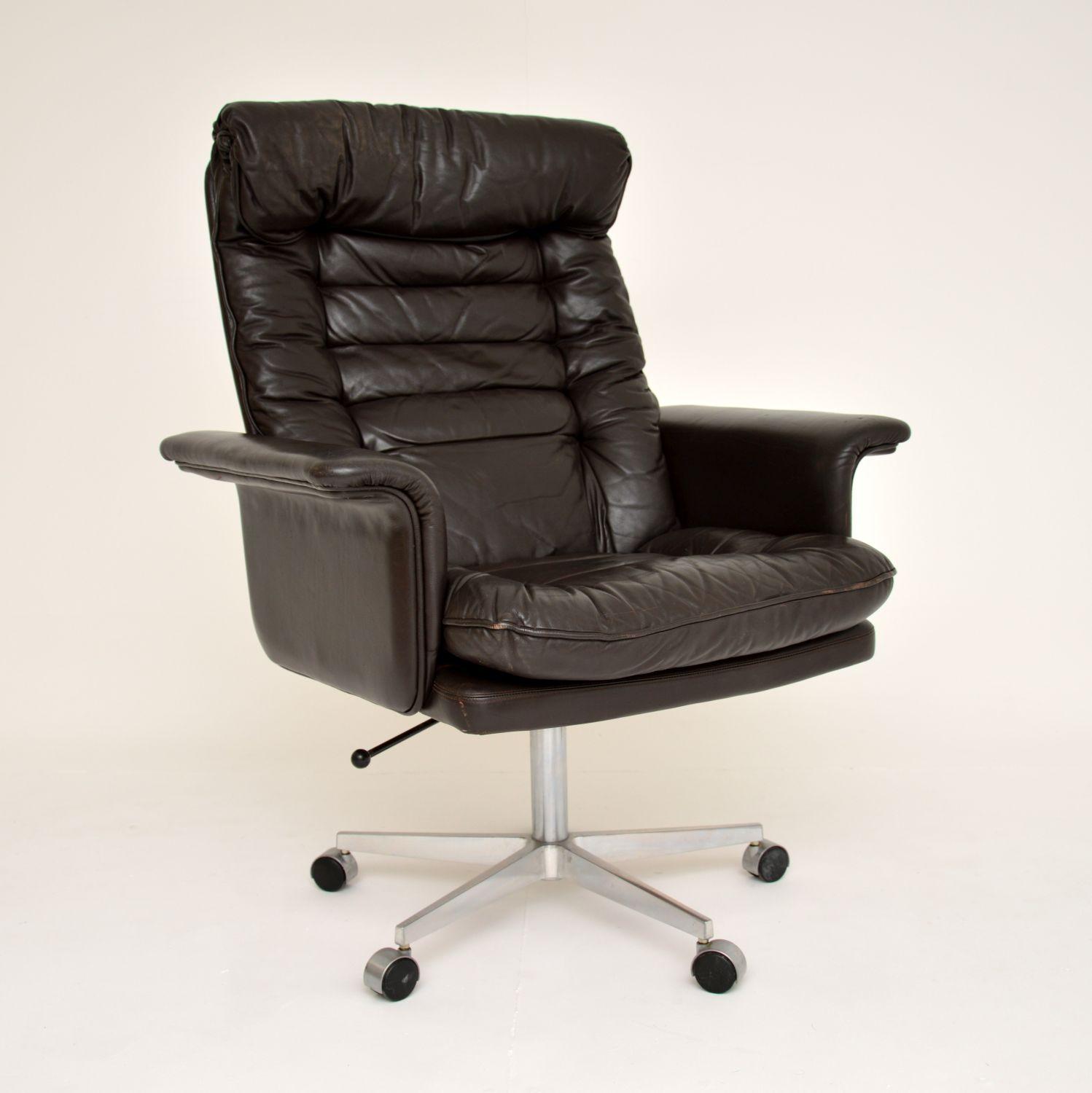 1970's Vintage Danish Leather Swivel Desk Chair by Dyrlund