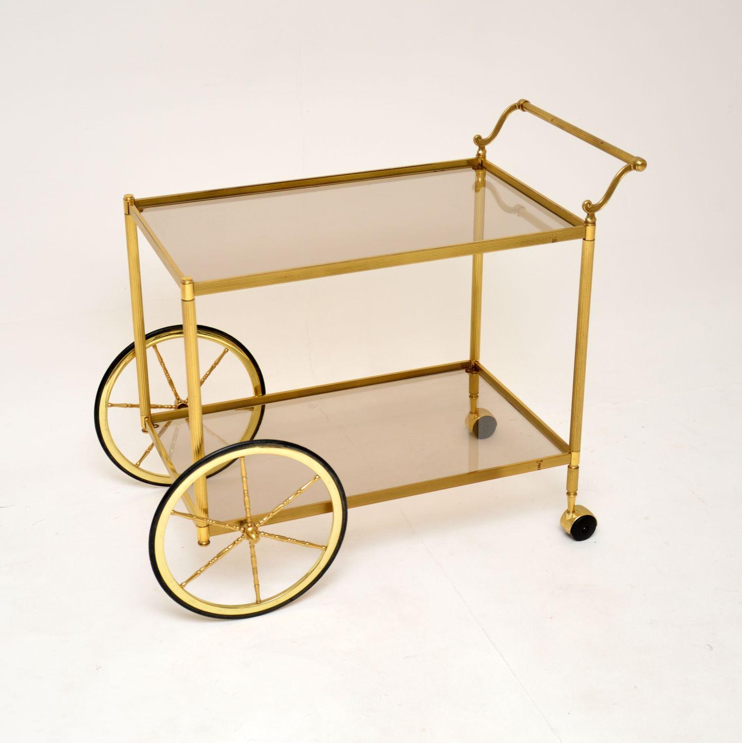 1970s Vintage French Brass & Glass Drinks Trolley / Bar Cart
