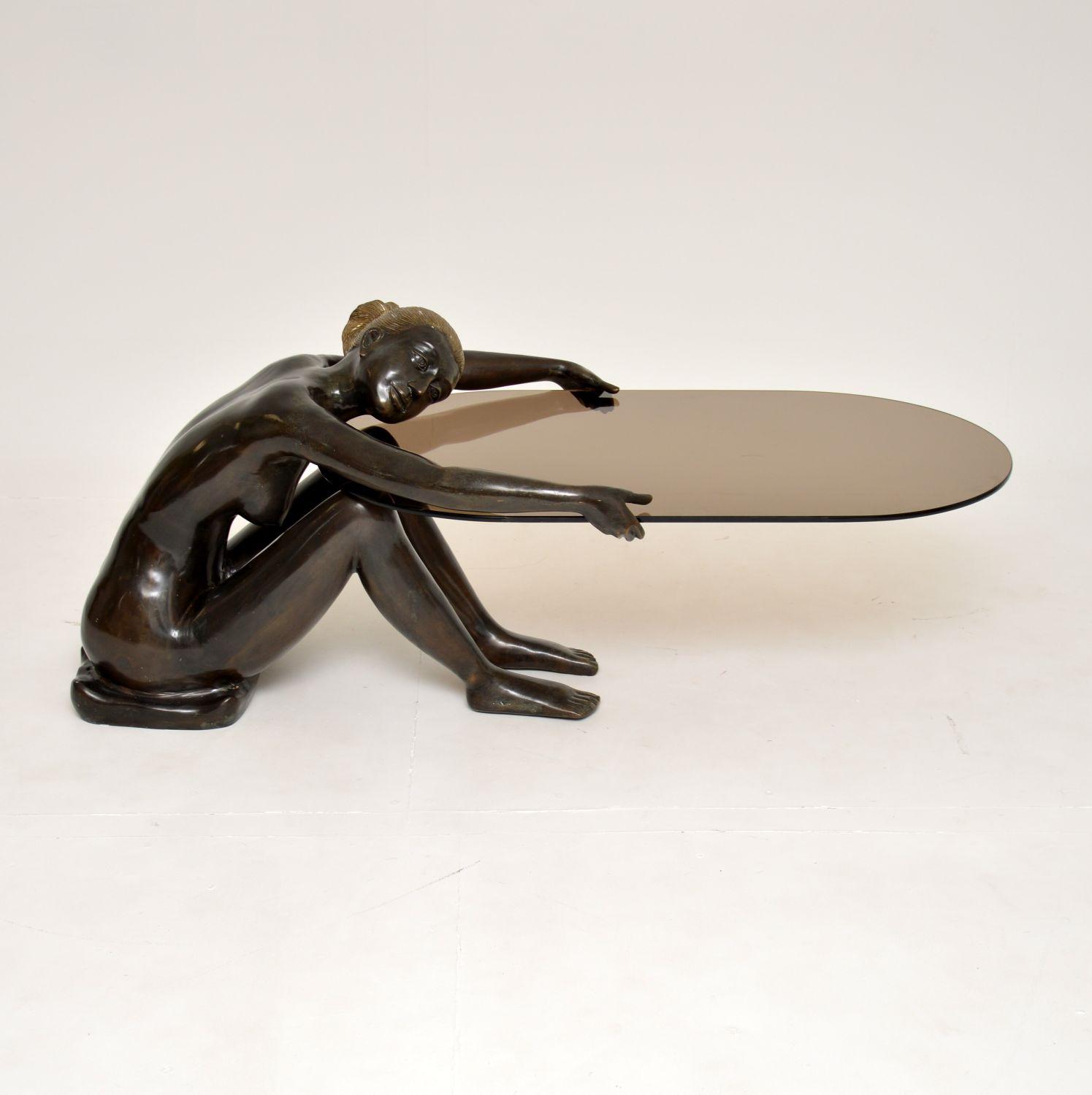 1970's Vintage French Bronze Nude Sculpture Coffee Table