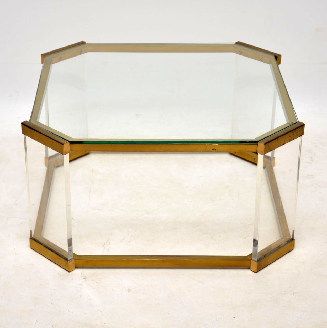 1970s Vintage Glass, Brass & Perspex Coffee Table (1 of 1)