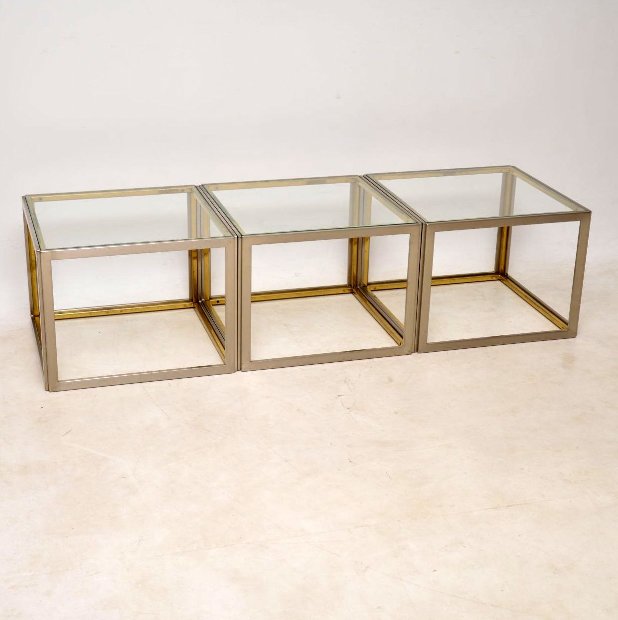 1970s Vintage Italian Set of Steel & Brass Side Tables / Coffee Table (1 of 1)