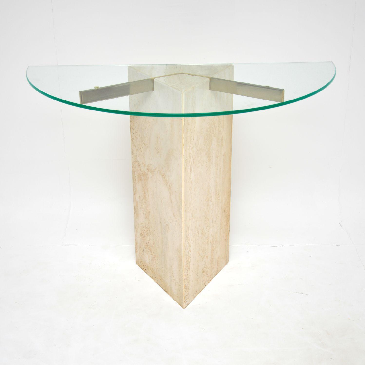 1970's Vintage Italian Travertine & Brass Console Table by Artedi