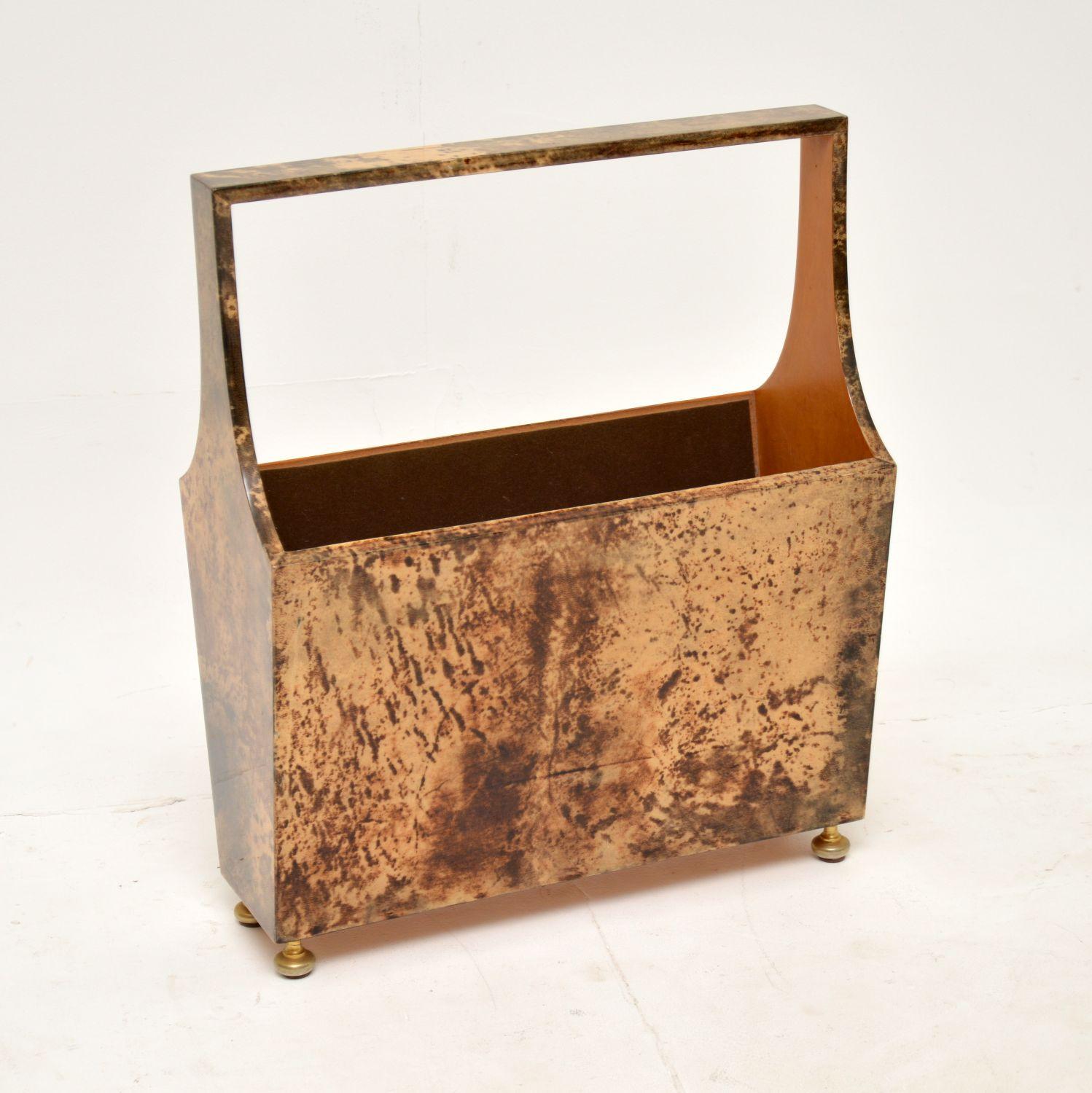 1970's Vintage Lacquered Goat Skin Magazine Rack by Aldo Tura