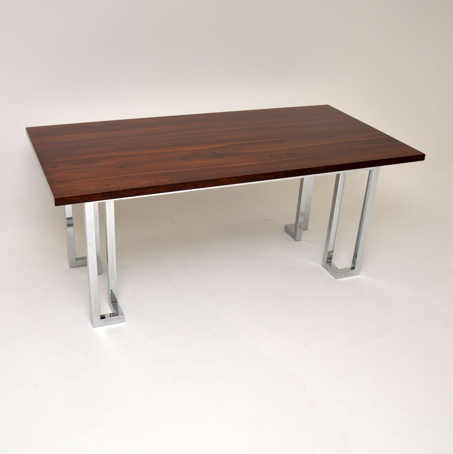1970's Vintage Rosewood & Chrome Dining Table by Pieff