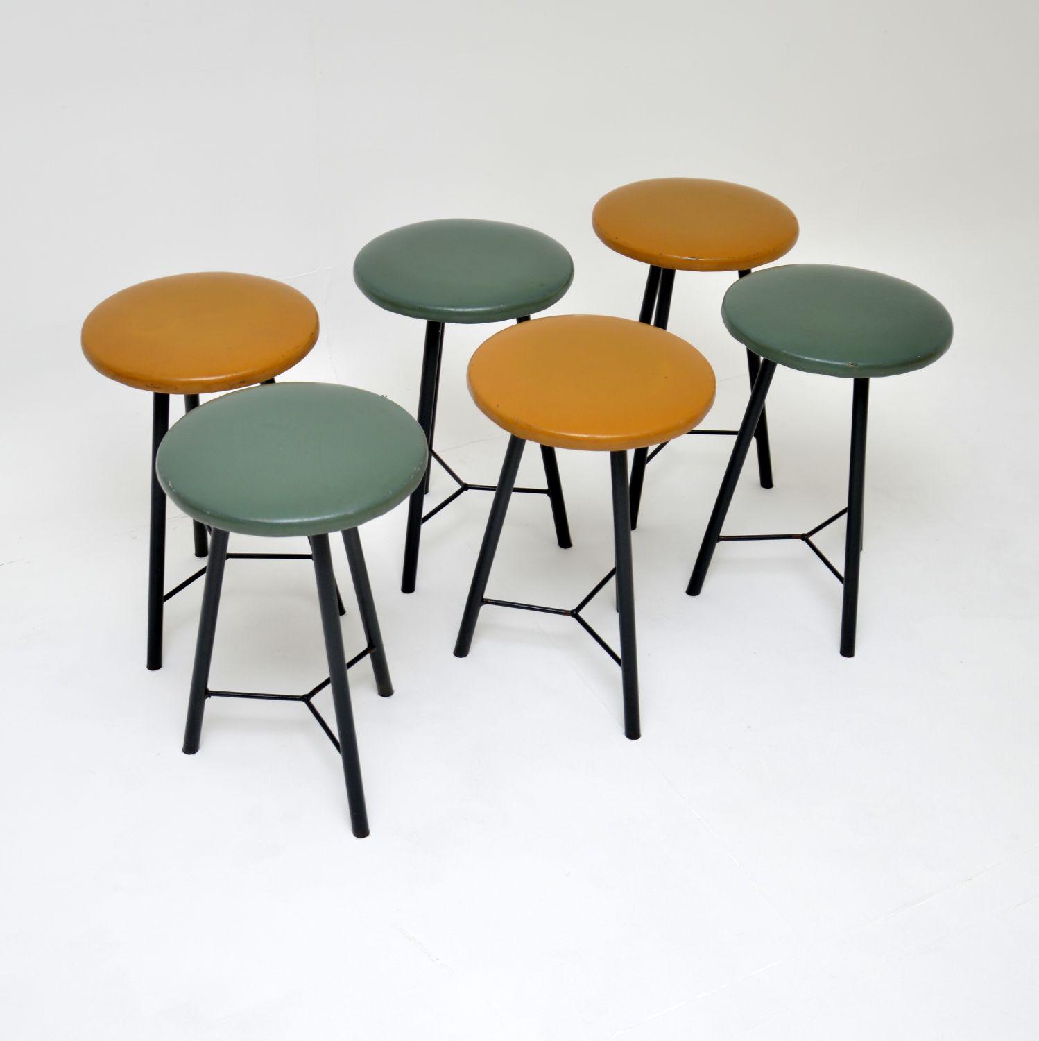 1970's Vintage Set of Six Leather & Steel Stools (1 of 11)