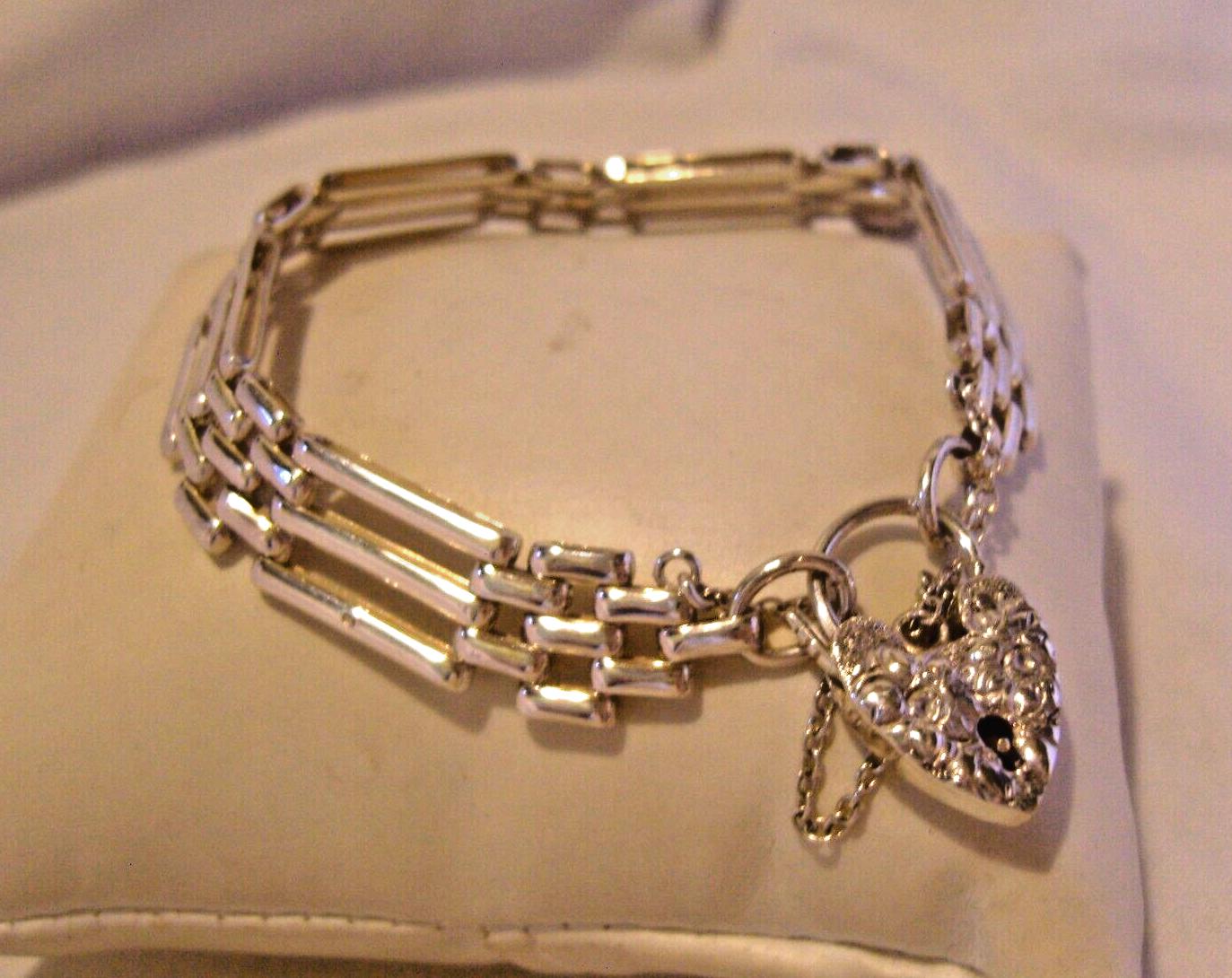 1978 Gate Bracelet Vintage Big Sterling Silver With Ornate Love Heart Padlock 7"L