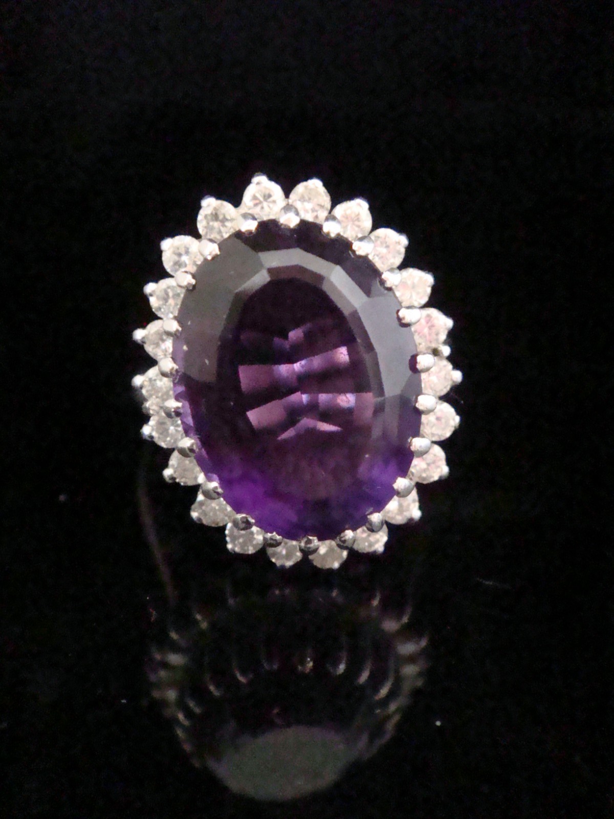 1980s 18ct White Gold Fine Amethyst & Diamond Cocktail Ring Cluster