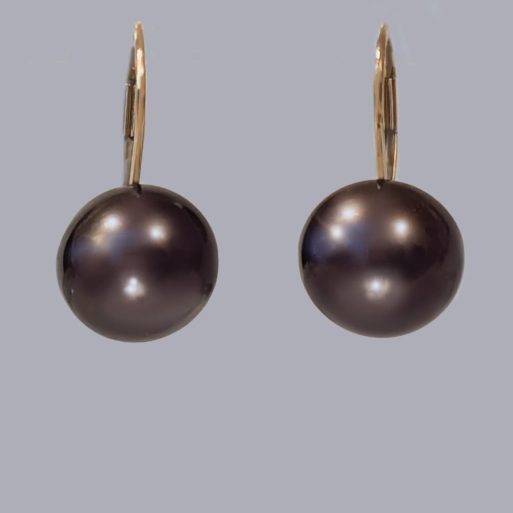 1980s Black Pearl Earrings with 10ct Gold Lever Hooks