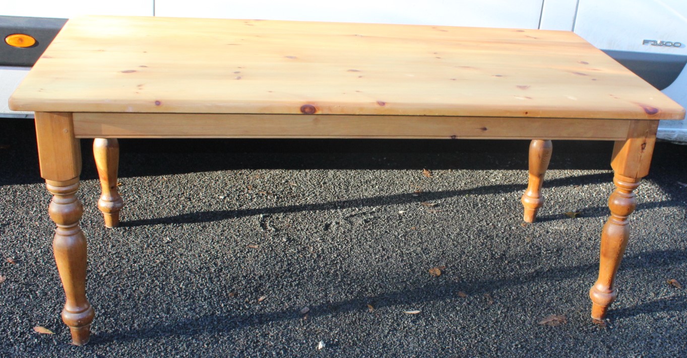 1980s Country Pine Table On Turned Legs