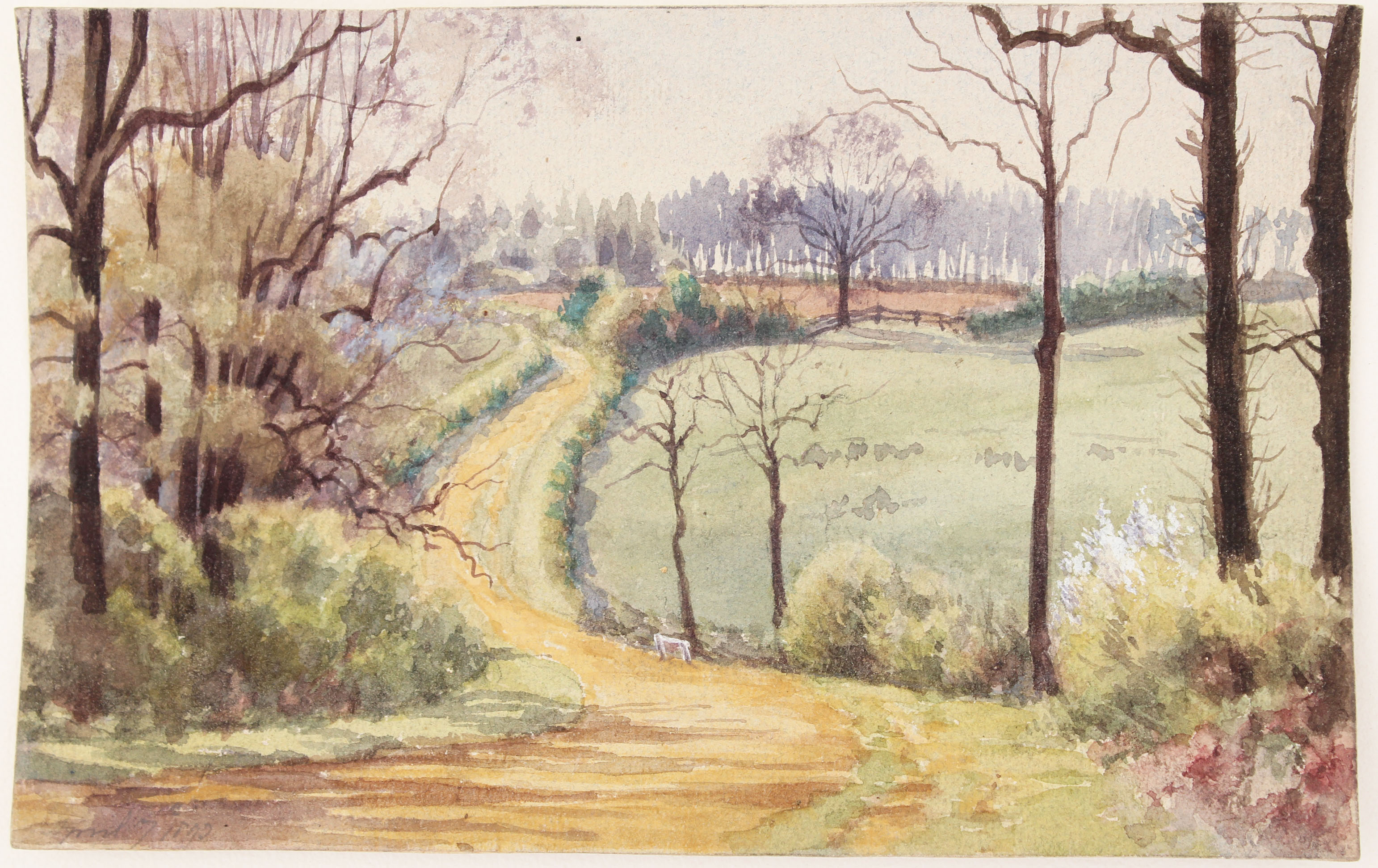 19C Victorian watercolour landscape painting Great Brickhill Bucks. FREE DELIVERY