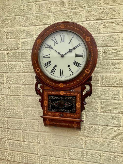 19th C Walnut Inlaid American Drop Dial Striking Wall Clock (1 of 9)
