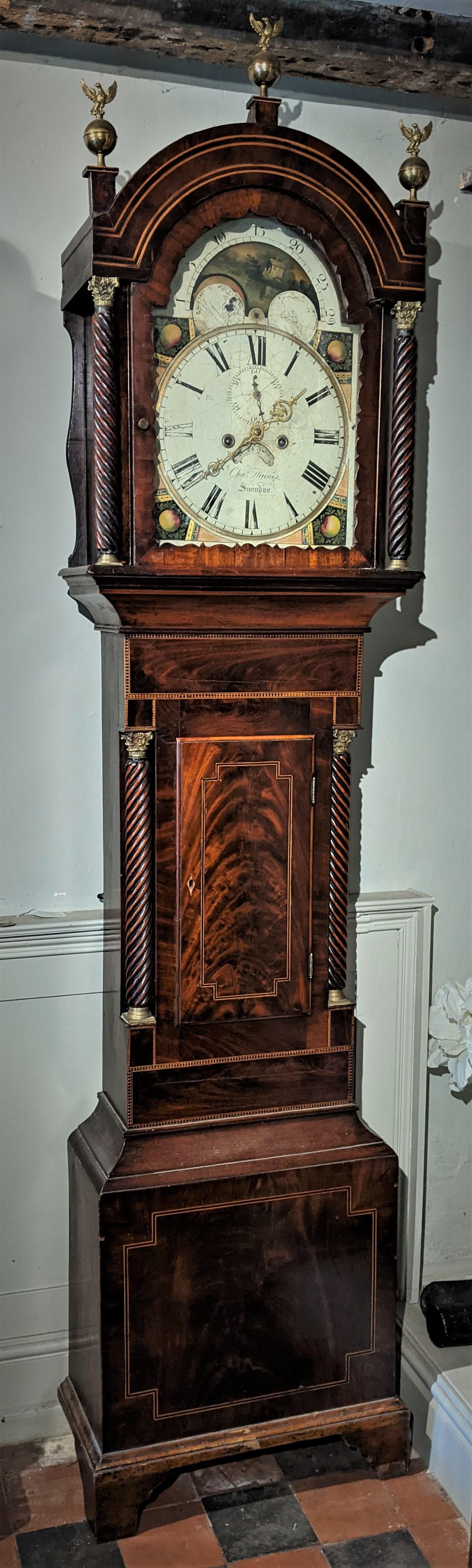 19th Cent Mahogany Moon Dial Longcase Grandfather Clock