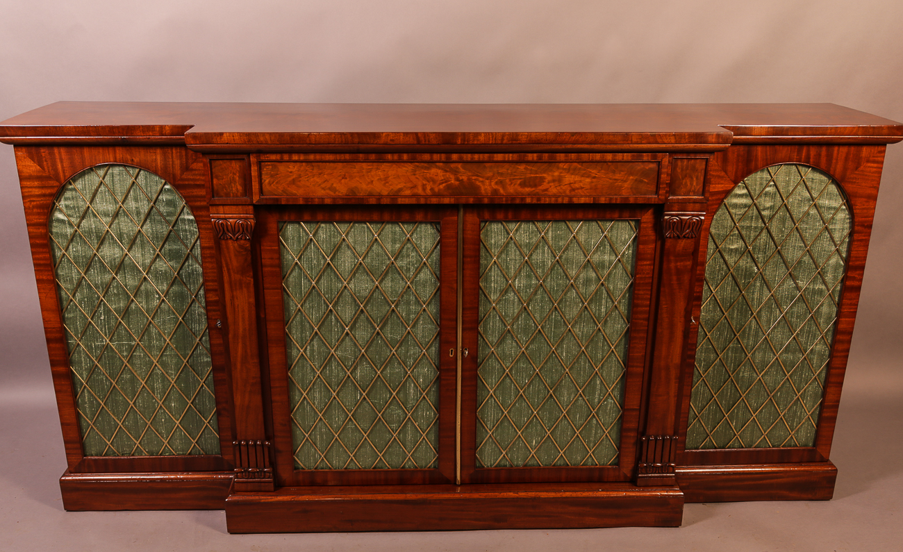 19th Century 4 Door Breakfront Pier Cabinet Brass Grills Silk