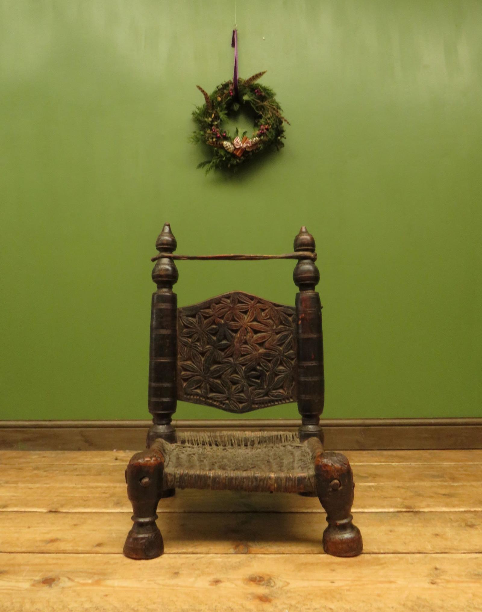 19th Century Afghanistan Cederwood Low Tribal Chair With Carvings