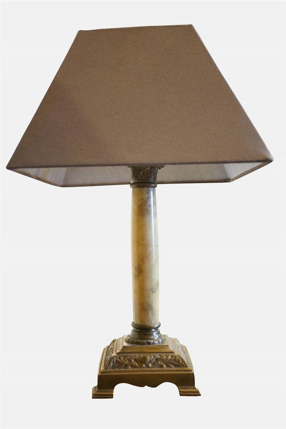 19th Century Alabaster & Brass Column Oil Lamp