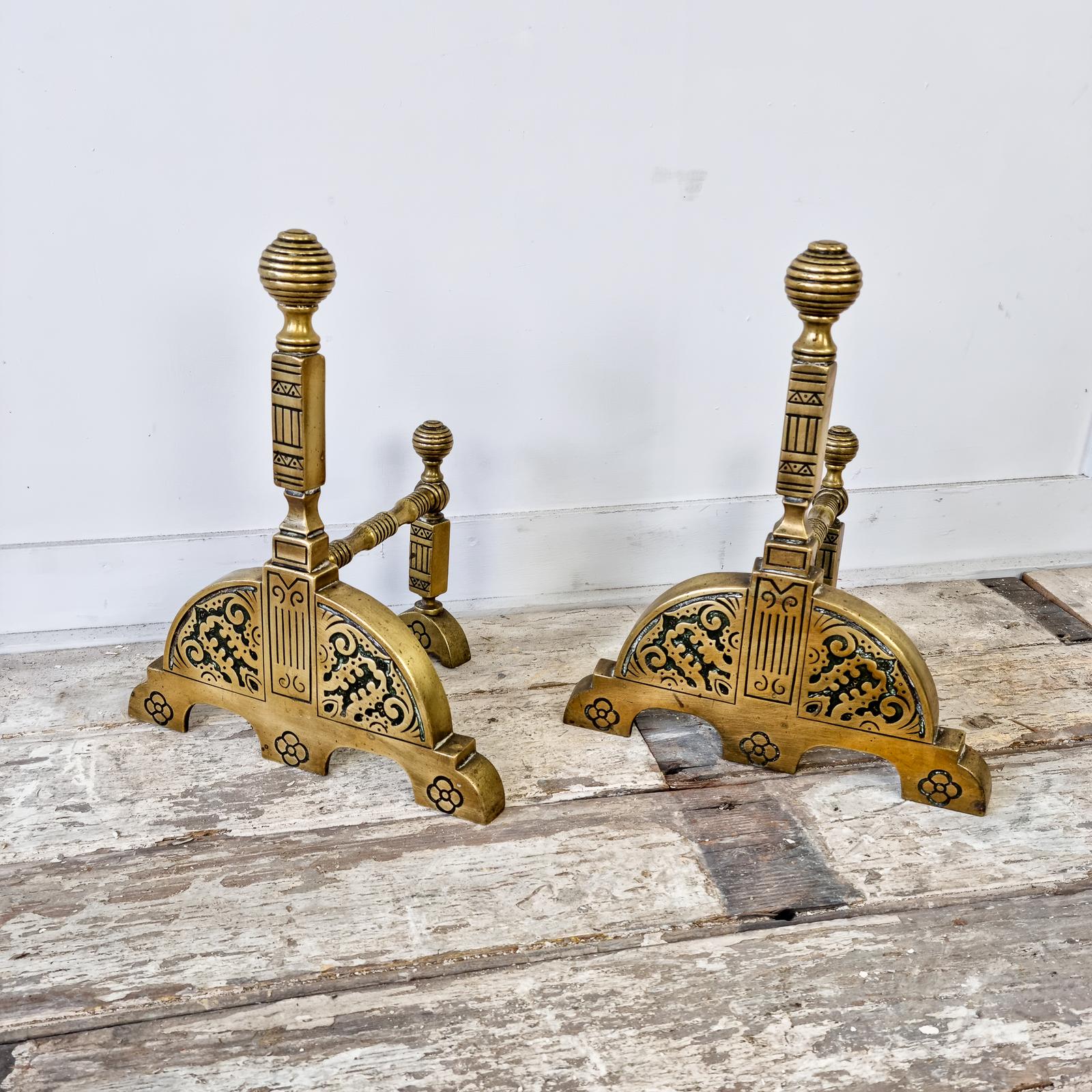 19th Century Antique Aesthetic Movement Brass Fire Dogs