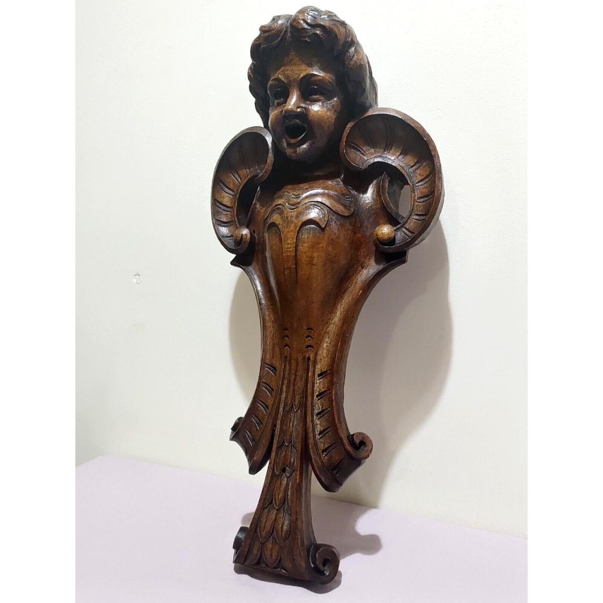 19th Century Antique Baroque Wood Carving Cherub Putti Wall Bracket Caryatid