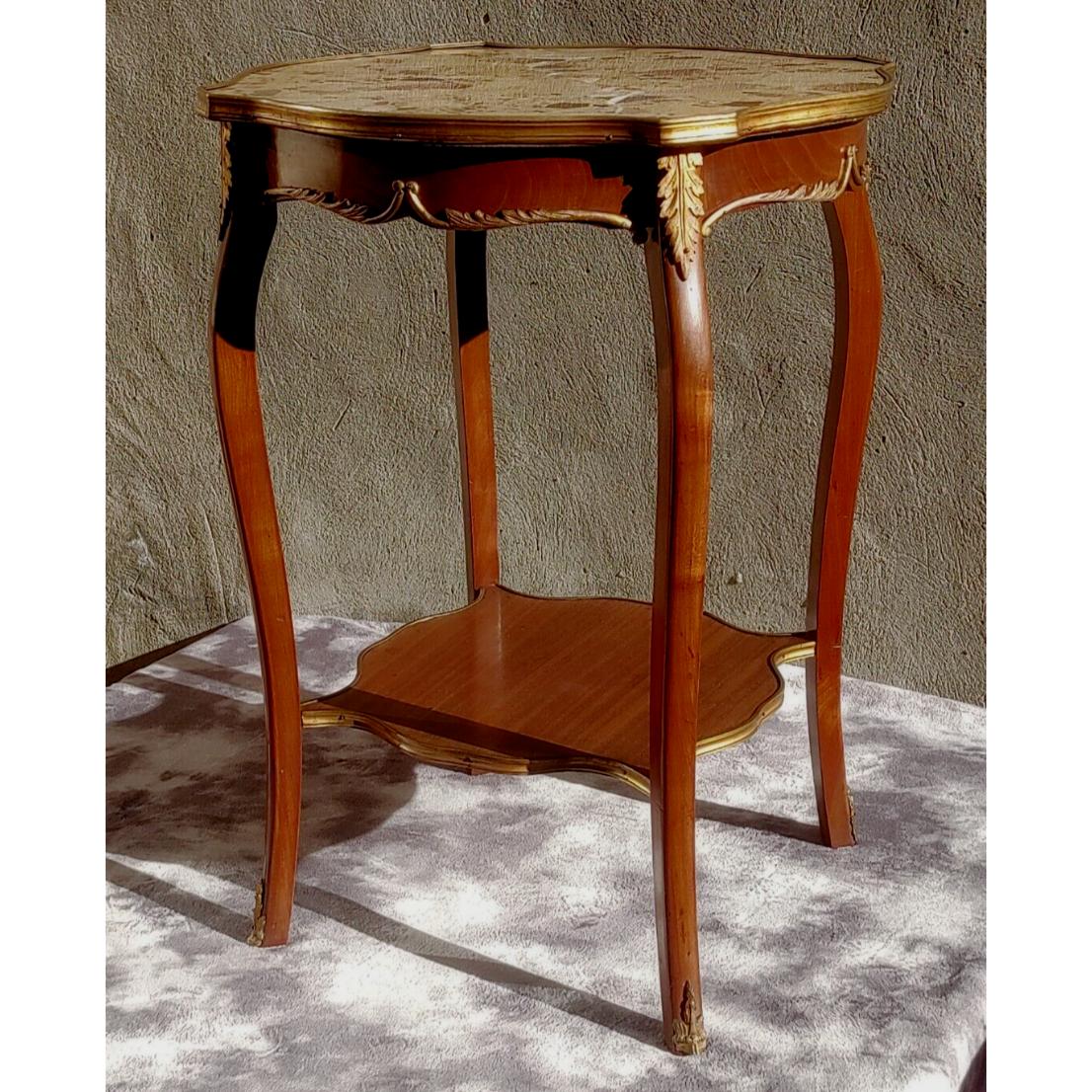 19th Century Antique French Louis XV Style Kingwood Marble Top Brass Gueridon Side Table