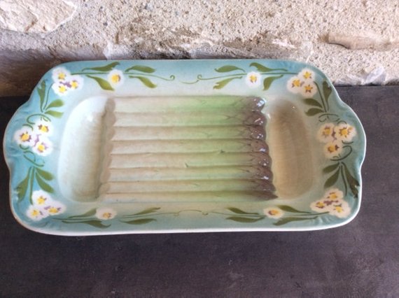 19th Century Antique French Pottery Asparagus Serving Dish Sarreguemines Majolica Style