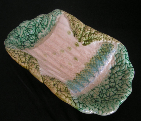 19th Century Antique French Pottery Majolica Asparagus Serving Dish Sarreguemines Style