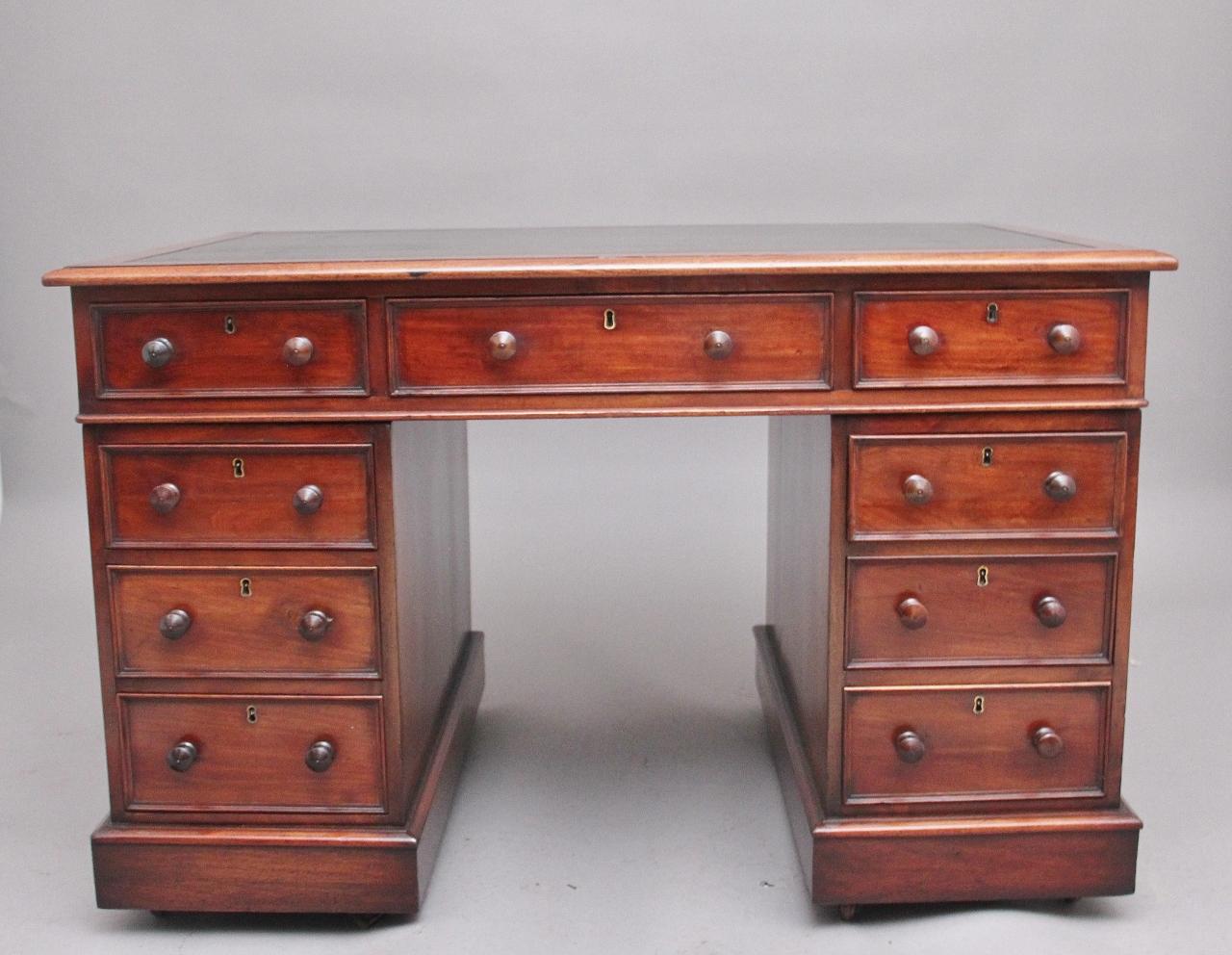 19th Century Antique Mahogany Pedestal Desk (1 of 12)