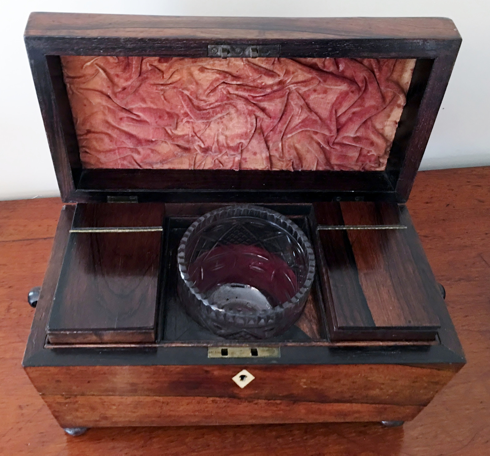 19th Century Antique Rosewood Tea Caddy of Sarcophagus Form