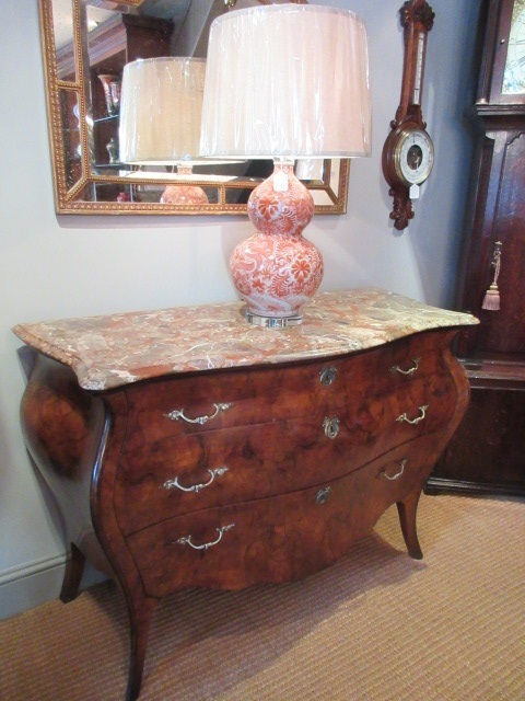 19th Century Antique Walnut Inlaid Bombe Fronted Chest