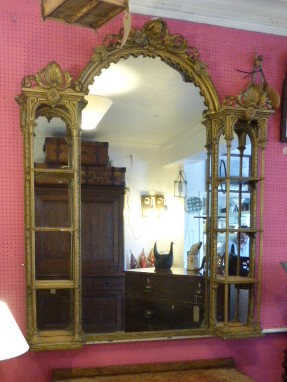 19th Century Arched Top Painted Gilded Overmantle Mirror