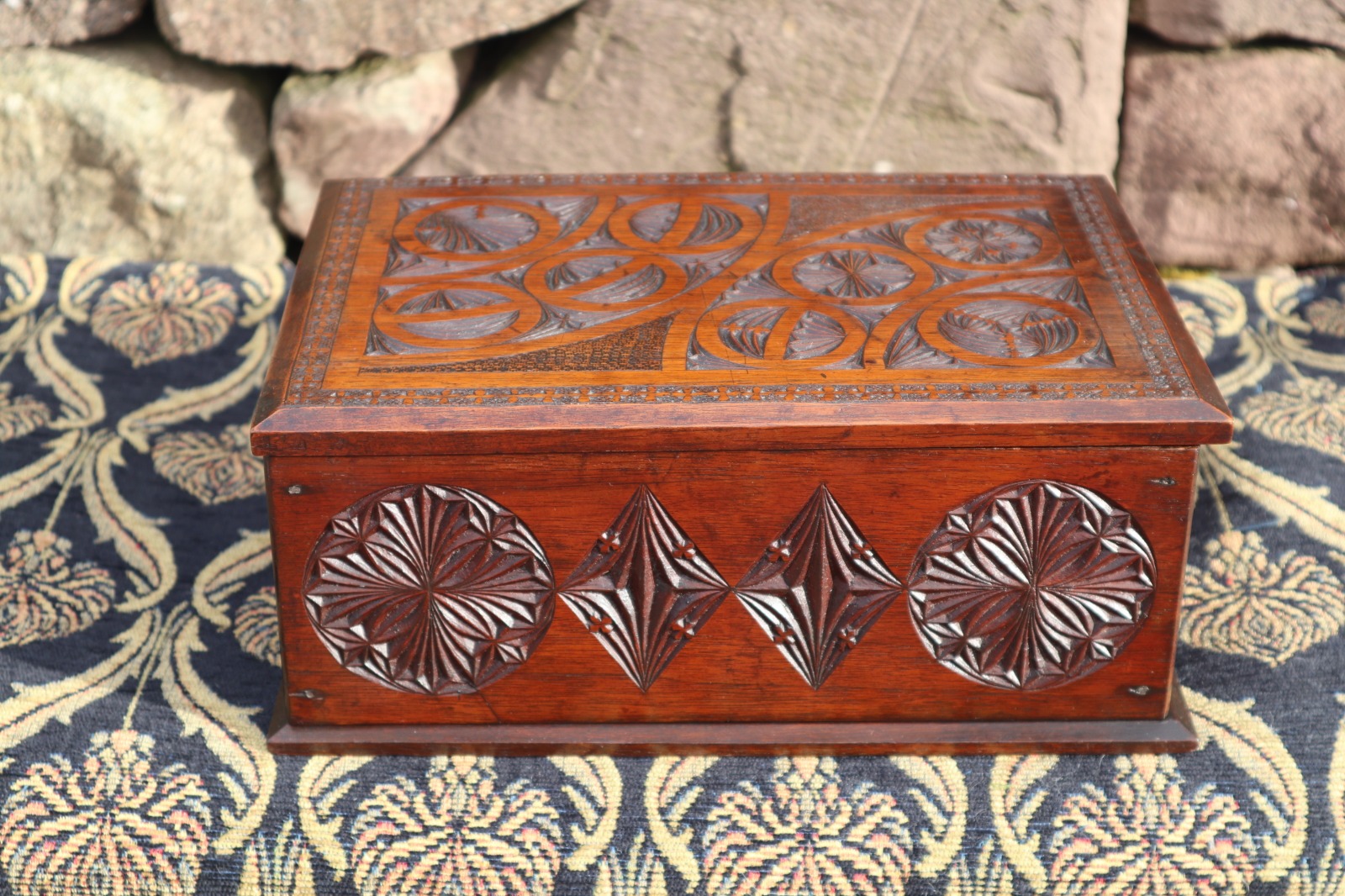19th Century Arts & Crafts / Gothic Revival Geometric Pattern Carved Walnut Writing Box C.1880 (1 of 39)
