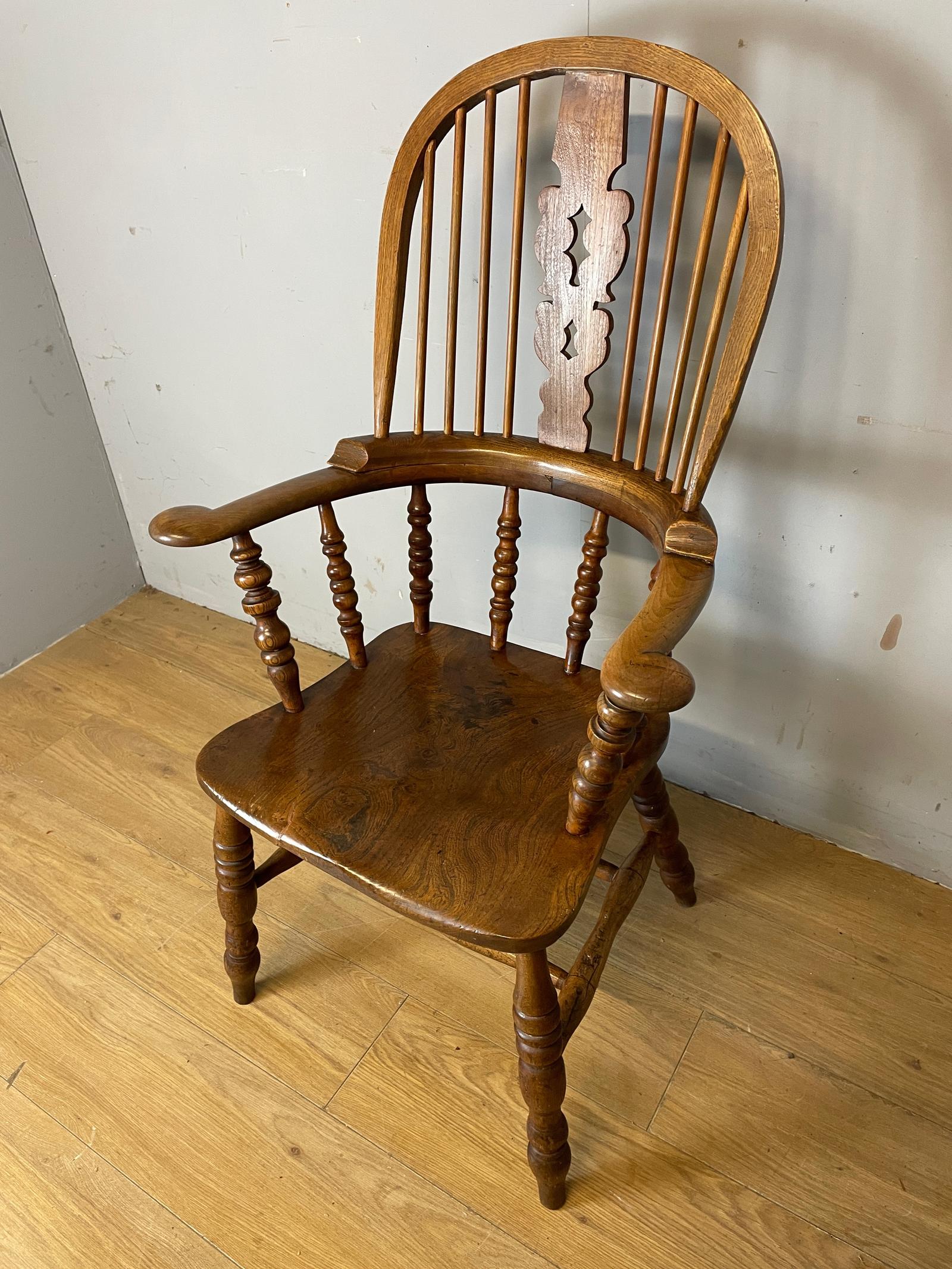 19th Century Ash & Elm Pad Arm Windsor Kitchen Chair
