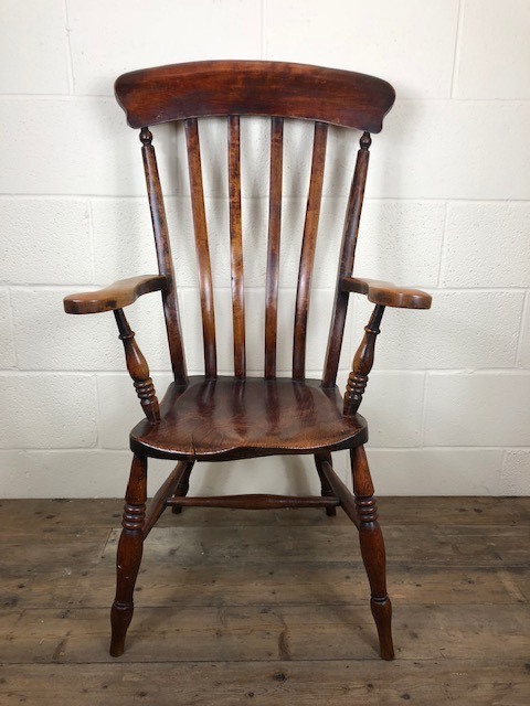 19th Century Ash & Elm Slat Back Kitchen Armchair (1 of 1)