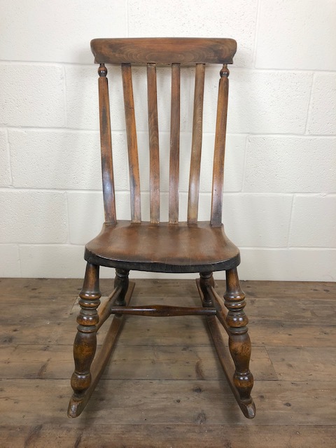 19th Century Ash & Elm Slat Back Rocking Chair (1 of 5)