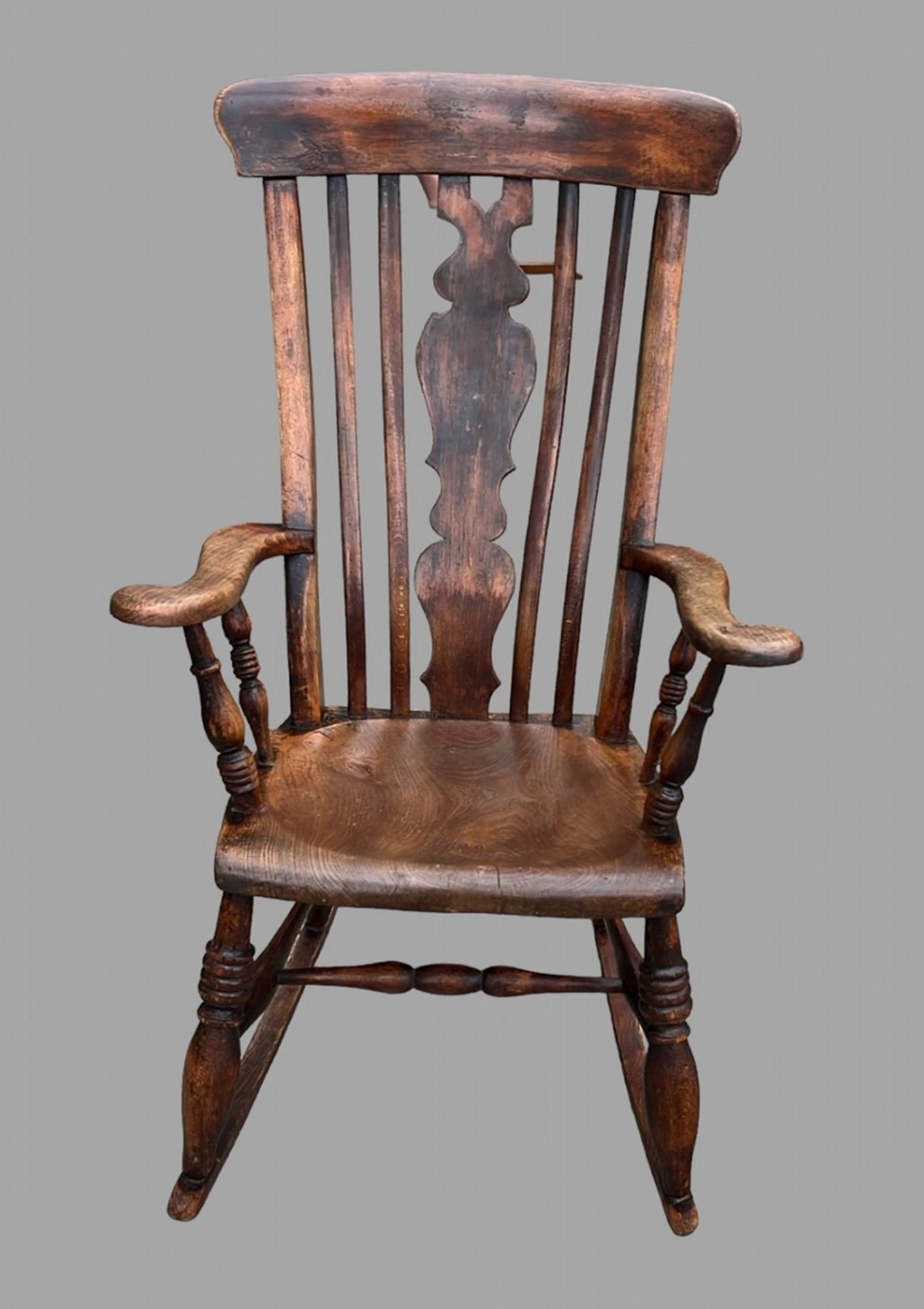 19th Century Ash & Elm Splat Back Windsor Rocking Armchair