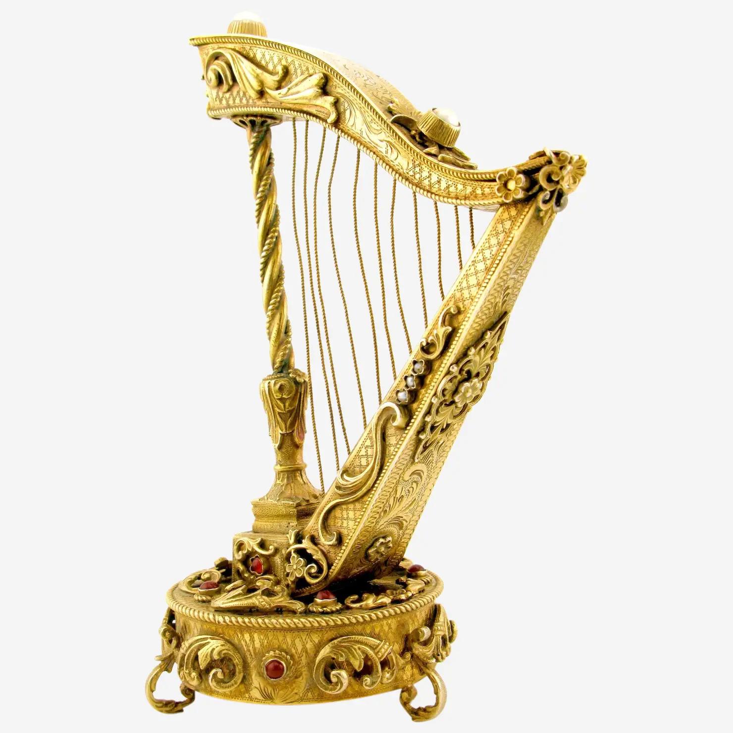 19th Century Austrian Gem-set Silver-Gilt Model of a Harp