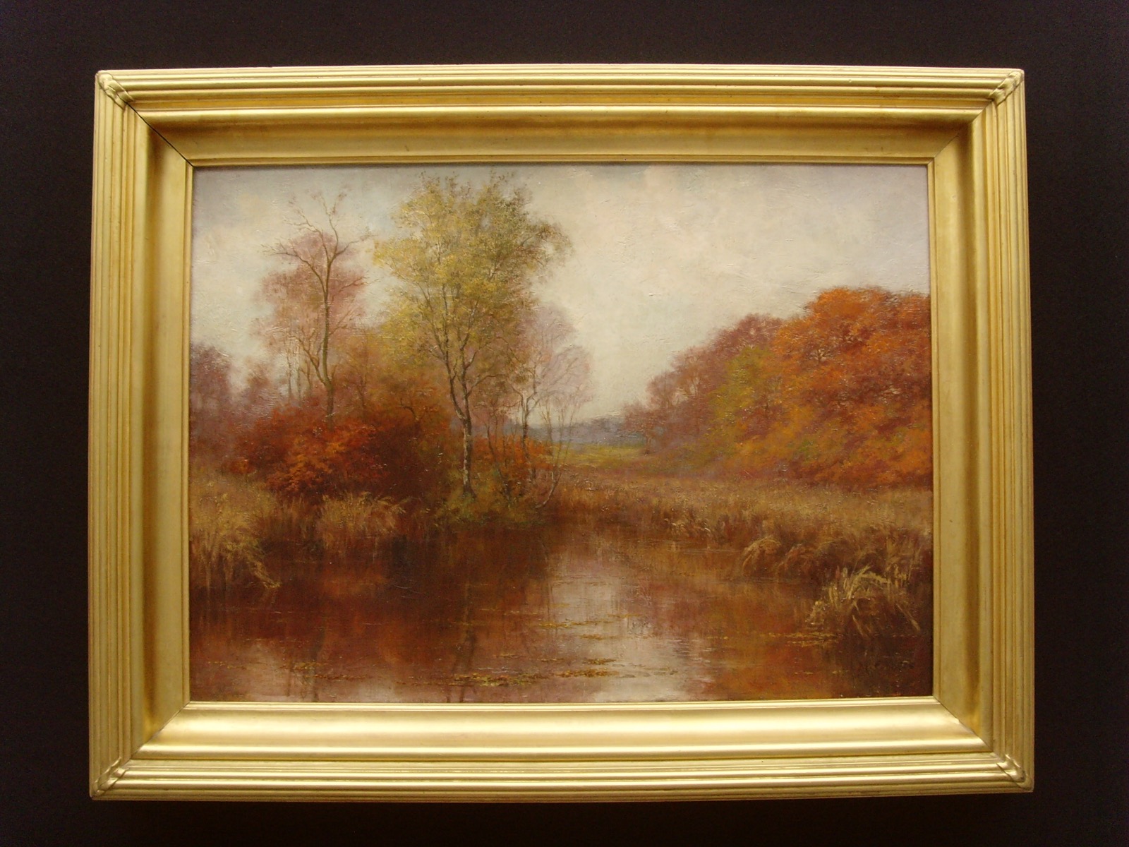 19th Century Autumn Landscape Oil Painting of Moseley Pool (1 of 8)